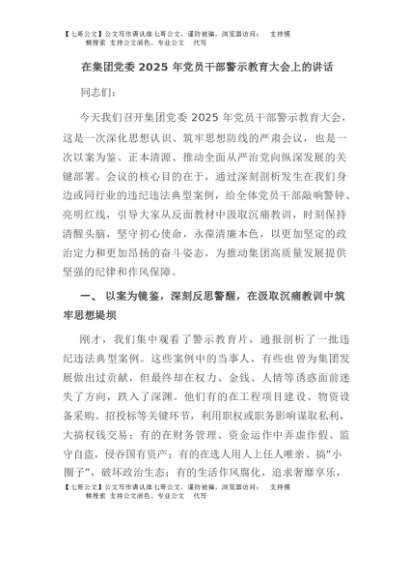 【七哥公文】2025年:在集团党委2025年党员干部警示教育大会上的讲话+更多免费公文+VX:QiGeGongWen2024