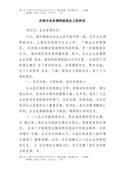 / 【七哥公文】2025年:在部分企业调研座谈会上的讲话+更多免费公文+VX:QiGeGongWen2024