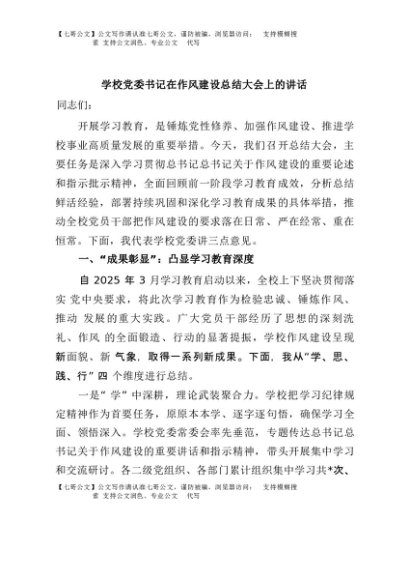 / 【七哥公文】2025年:学校党委书记在作风建设总结大会上的讲话+更多免费公文+VX:QiGeGongWen2024