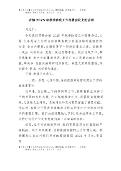/ 【七哥公文】2025年:在镇2025年秋季防疫工作部署会议上的讲话+更多免费公文+VX:QiGeGongWen2024