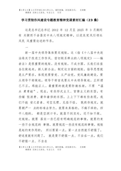 【七哥公文】2025年:学习贯彻作风建设专题教育精神党课素材汇编(23条)+更多免费公文+VX:QiGeGongWen2024