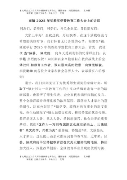 / 【七哥公文】2025年:在镇2025年奖教奖学暨教育工作大会上的讲话+更多免费公文+VX:QiGeGongWen2024