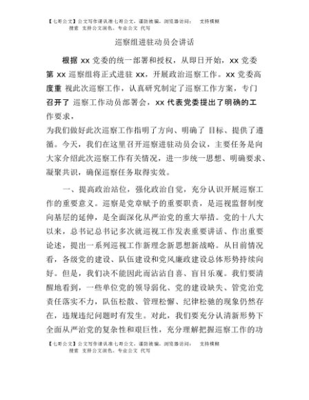 【七哥公文】2025年:巡察组进驻动员会讲话+更多免费公文+VX:QiGeGongWen2024
