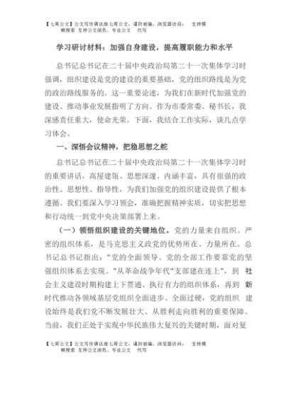 / 【七哥公文】2025年:学习研讨材料:加强自身建设,提高履职能力和水平+更多免费公文+VX:QiGeGongWen2024