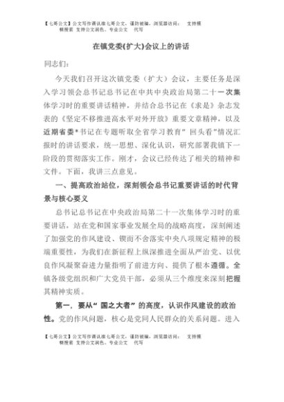 / 【七哥公文】2025年:在镇党委(扩大)会议上的讲话+更多免费公文+VX:QiGeGongWen2024