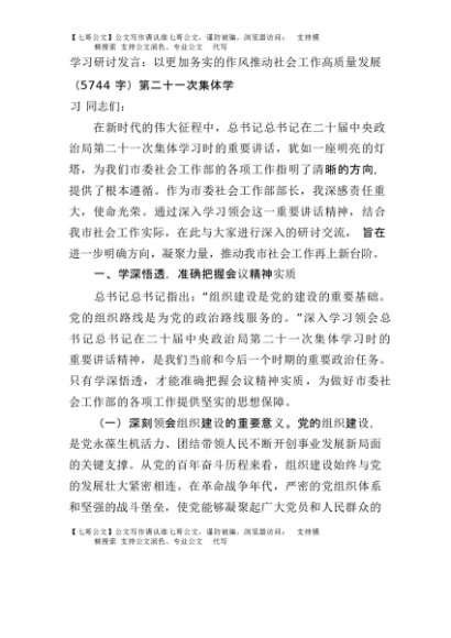 【七哥公文】2025年:学习研讨发言:以更加务实的作风推动社会工作高质量发展(5744字)第二十一次集体学习+更多免费公文+VX:QiGeGongWen2024