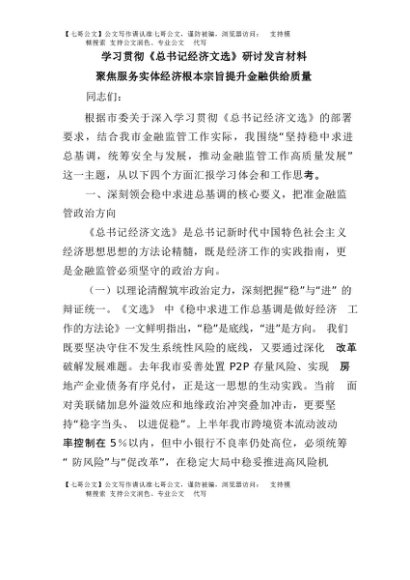 / 【七哥公文】2025年:学习贯彻《总书记经济文选》研讨发言材料+更多免费公文+VX:QiGeGongWen2024