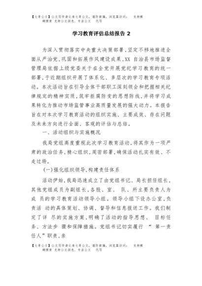 / 【七哥公文】2025年:学习教育评估总结报告2+更多免费公文+VX:QiGeGongWen2024