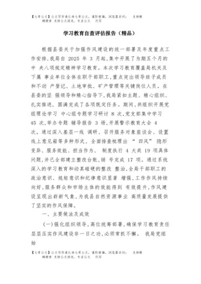 / 【七哥公文】2025年:学习教育自查评估报告(精品)+更多免费公文+VX:QiGeGongWen2024