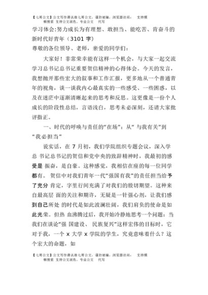 【七哥公文】2025年:学习体会:努力成长为有理想、敢担当、能吃苦、肯奋斗的新时代好青年(3101字)+更多免费公文+VX:QiGeGongWen2024