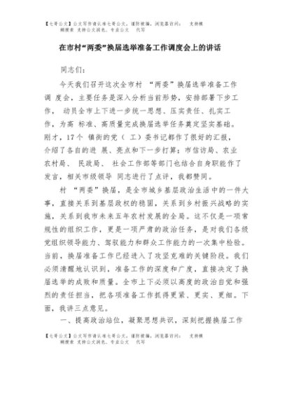 / 【七哥公文】2025年:在市村“两委”换届选举准备工作调度会上的讲话+更多免费公文+VX:QiGeGongWen2024