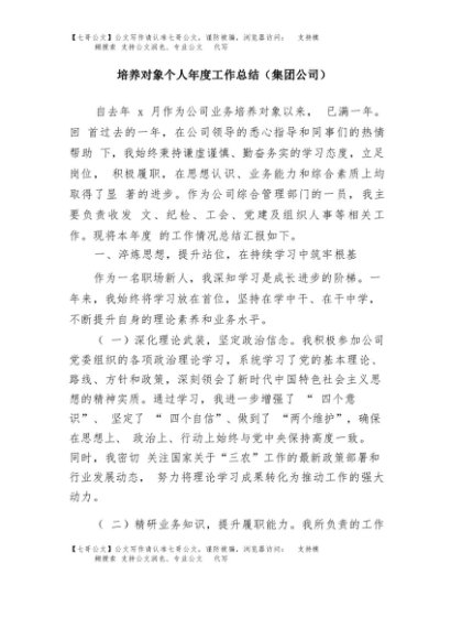/ 【七哥公文】2025年:培养对象个人年度工作总结(集团公司)+更多免费公文+VX:QiGeGongWen2024
