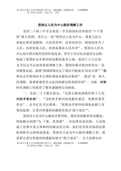 / 【七哥公文】2025年:坚持以人民为中心做好调解工作+更多免费公文+VX:QiGeGongWen2024