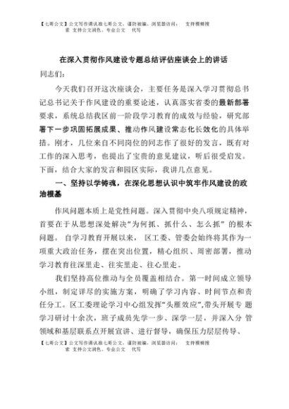 / 【七哥公文】2025年:在深入贯彻作风建设专题总结评估座谈会上的讲话+更多免费公文+VX:QiGeGongWen2024