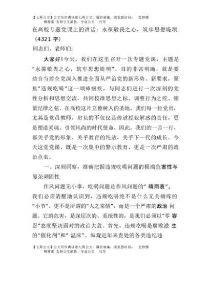 【七哥公文】2025年:在高校专题党课上的讲话:永葆敬畏之心,筑牢思想堤坝(4321字)+更多免费公文+VX:QiGeGongWen2024