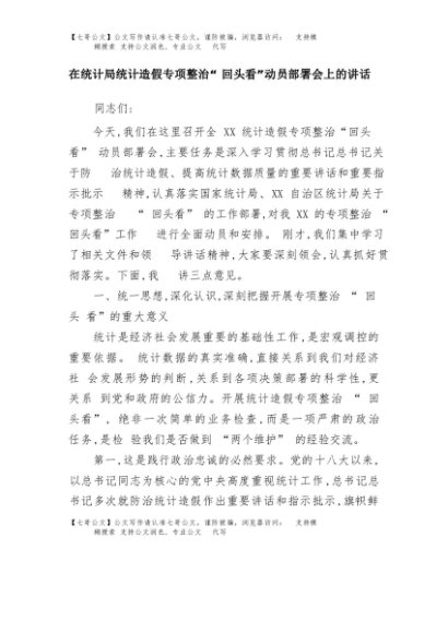 【七哥公文】2025年:在统计局统计造假专项整治“回头看”动员部署会上的讲话+更多免费公文+VX:QiGeGongWen2024