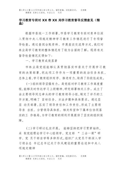 【七哥公文】2025年:学习教育专班对XX市XX局学习教育督导反馈意见(精品)+更多免费公文+VX:QiGeGongWen2024