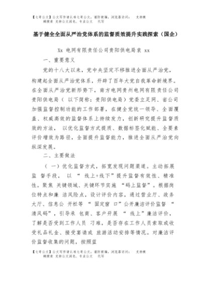 【七哥公文】2025年:基于健全全面从严治党体系的监督质效提升实践探索(国企)+更多免费公文+VX:QiGeGongWen2024