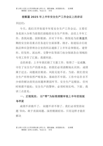 / 【七哥公文】2025年:在街道2025年上半年安全生产工作会议上的讲话+更多免费公文+VX:QiGeGongWen2024
