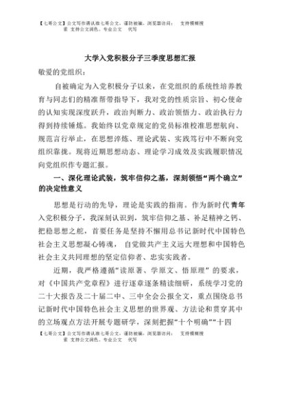 / 【七哥公文】2025年:大学入党积极分子三季度思想汇报+更多免费公文+VX:QiGeGongWen2024