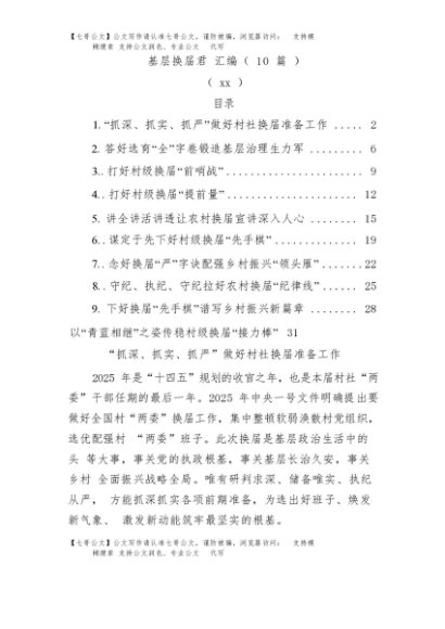 / 【七哥公文】2025年:基层换届文稿合集10篇(经验发言、要求)+更多免费公文+VX:QiGeGongWen2024