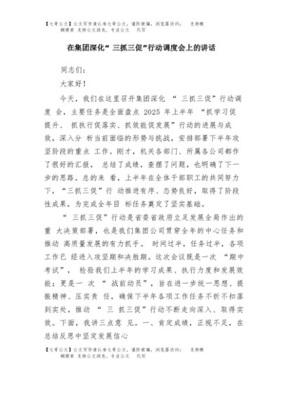 / 【七哥公文】2025年:在集团深化“三抓三促”行动调度会上的讲话+更多免费公文+VX:QiGeGongWen2024