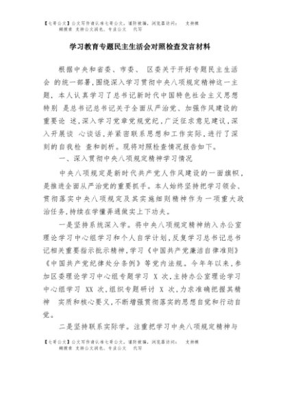 / 【七哥公文】2025年:学习教育专题民主生活会对照检查发言材料+更多免费公文+VX:QiGeGongWen2024