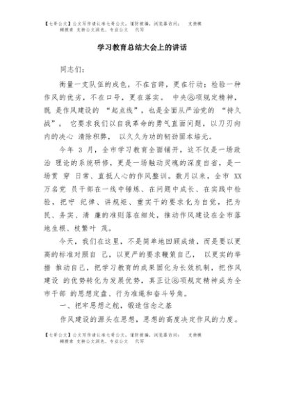 / 【七哥公文】2025年:学习教育总结大会上的讲话+更多免费公文+VX:QiGeGongWen2024
