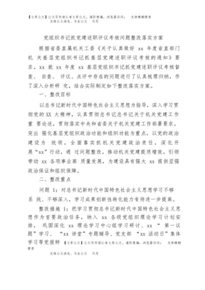 【七哥公文】2025年:基层党组织书记抓党建述职评议考核问题整改落实方案+更多免费公文+VX:QiGeGongWen2024