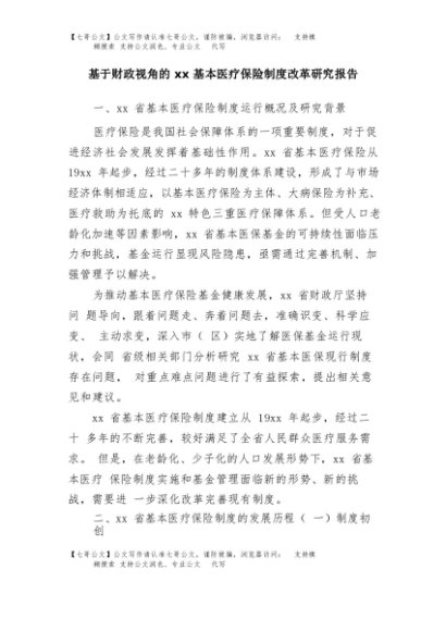 / 【七哥公文】2025年:基于财政视角的xx基本医疗保险制度改革研究报告+更多免费公文+VX:QiGeGongWen2024