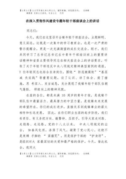 / 【七哥公文】2025年:在深入贯彻作风建设专题年轻干部座谈会上的讲话+更多免费公文+VX:QiGeGongWen2024