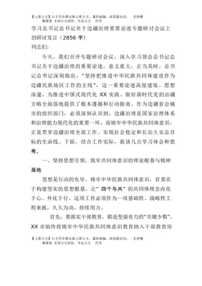 【七哥公文】2025年:学习总书记总书记关于边疆治理重要论述专题研讨会议上的研讨发言(2856字)+更多免费公文+VX:QiGeGongWen2024