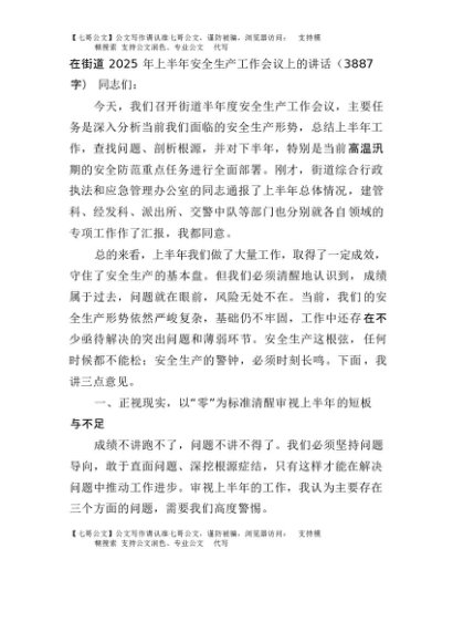 【七哥公文】2025年:在街道2025年上半年安全生产工作会议上的讲话(3887字)+更多免费公文+VX:QiGeGongWen2024