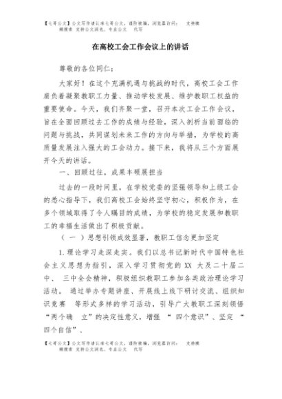 / 【七哥公文】2025年:在高校工会工作会议上的讲话+更多免费公文+VX:QiGeGongWen2024