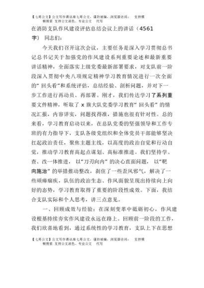 【七哥公文】2025年:在消防支队作风建设评估总结会议上的讲话(4561字)+更多免费公文+VX:QiGeGongWen2024
