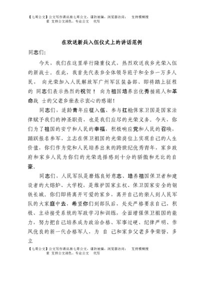 【七哥公文】2025年:在欢送新兵入伍仪式上的讲话范例+更多免费公文+VX:QiGeGongWen2024