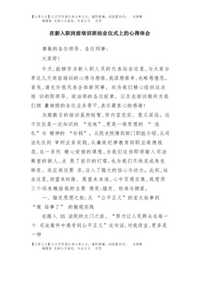 【七哥公文】2025年:在新入职岗前培训班结业仪式上的心得体会+更多免费公文+VX:QiGeGongWen2024