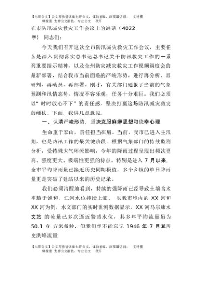/ 【七哥公文】2025年:在市防汛减灾救灾工作会议上的讲话(4022字)+更多免费公文+VX:QiGeGongWen2024