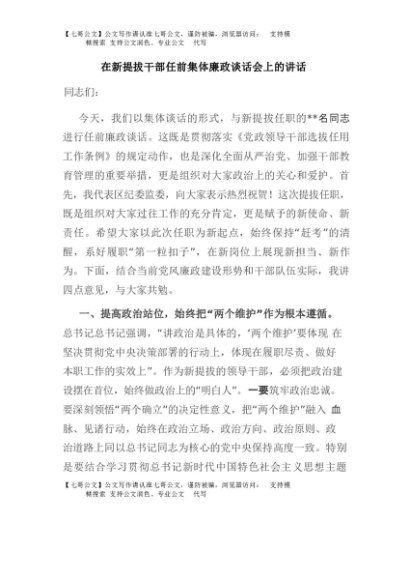/ 【七哥公文】2025年:在新提拔干部任前集体廉政谈话会上的讲话+更多免费公文+VX:QiGeGongWen2024