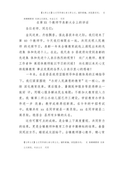 / 【七哥公文】2025年:在第XX个教师节表彰大会上的讲话+更多免费公文+VX:QiGeGongWen2024