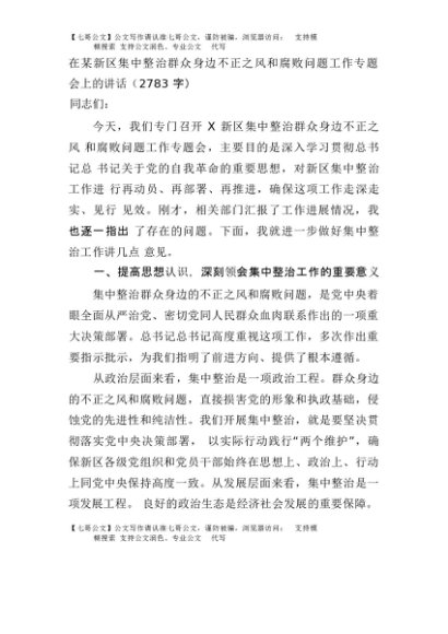 【七哥公文】2025年:在某新区集中整治群众身边不正之风和腐败问题工作专题会上的讲话(2783字)+更多免费公文+VX:QiGeGongWen2024