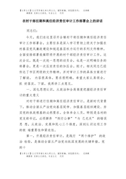 【七哥公文】2025年:在村干部任期和离任经济责任审计工作部署会上的讲话+更多免费公文+VX:QiGeGongWen2024
