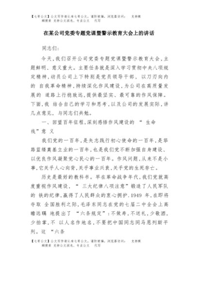 / 【七哥公文】2025年:在某公司党委专题党课暨警示教育大会上的讲话+更多免费公文+VX:QiGeGongWen2024