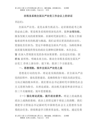 / 【七哥公文】2025年:在税务系统全面从严治党工作会议上的讲话+更多免费公文+VX:QiGeGongWen2024