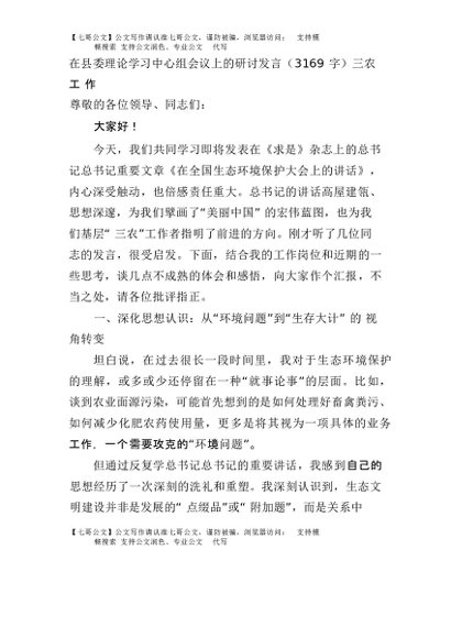 【七哥公文】2025年:在县委理论学习中心组会议上的研讨发言(3169字)三农工作+更多免费公文+VX:QiGeGongWen2024