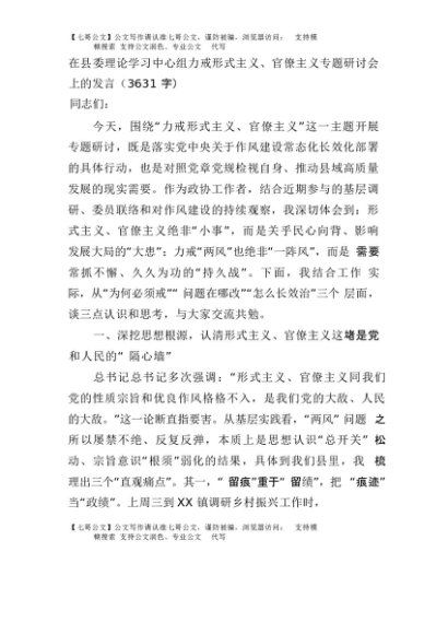 【七哥公文】2025年:在县委理论学习中心组力戒形式主义、官僚主义专题研讨会上的发言(3631字)+更多免费公文+VX:QiGeGongWen2024