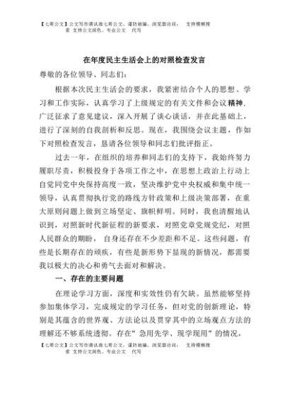 / 【七哥公文】2025年:在年度民主生活会上的对照检查发言+更多免费公文+VX:QiGeGongWen2024