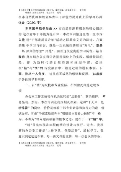 【七哥公文】2025年:在市自然资源和规划局青年干部能力提升班上的学习心得体会(2191字)+更多免费公文+VX:QiGeGongWen2024
