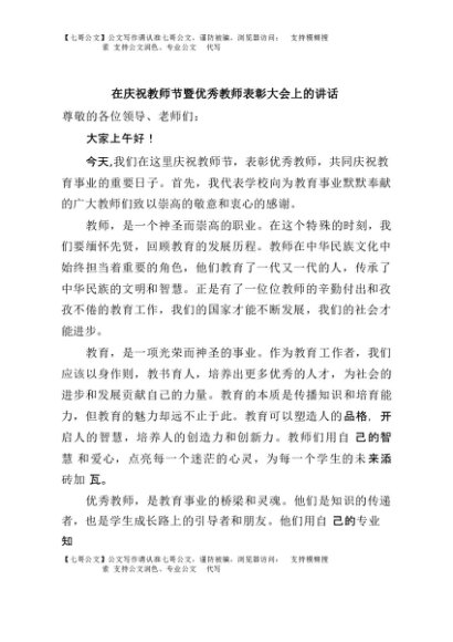 / 【七哥公文】2025年:在庆祝教师节暨优秀教师表彰大会上的讲话+更多免费公文+VX:QiGeGongWen2024