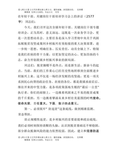 【七哥公文】2025年:在年轻干部、关键岗位干部培训学习会上的讲话(2577字)+更多免费公文+VX:QiGeGongWen2024